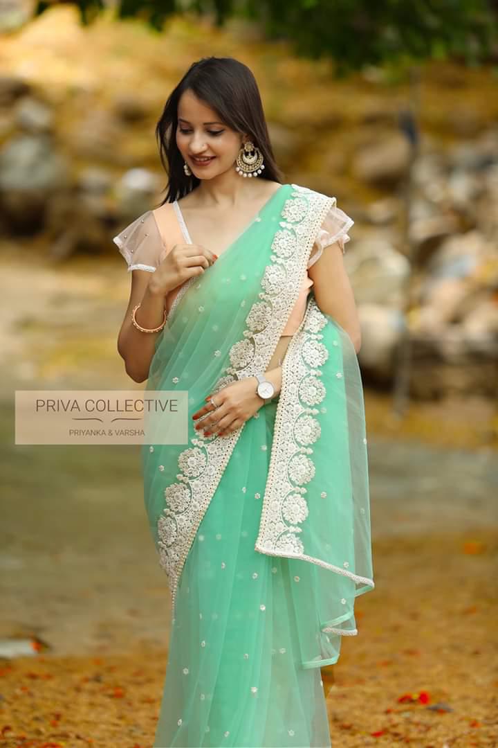 FABRIC DETAILS Net fabric saree with all over embroidery work Plain banglori silk blouse